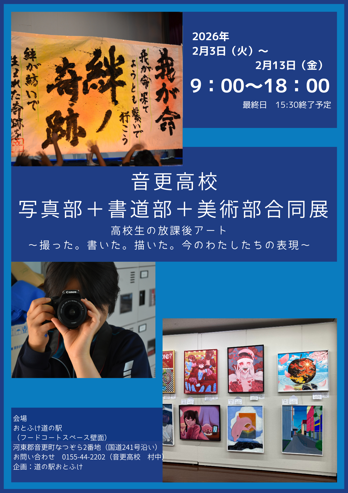 【2月3日~2月13日開催】音更高校 写真部+書道部+美術部合同展