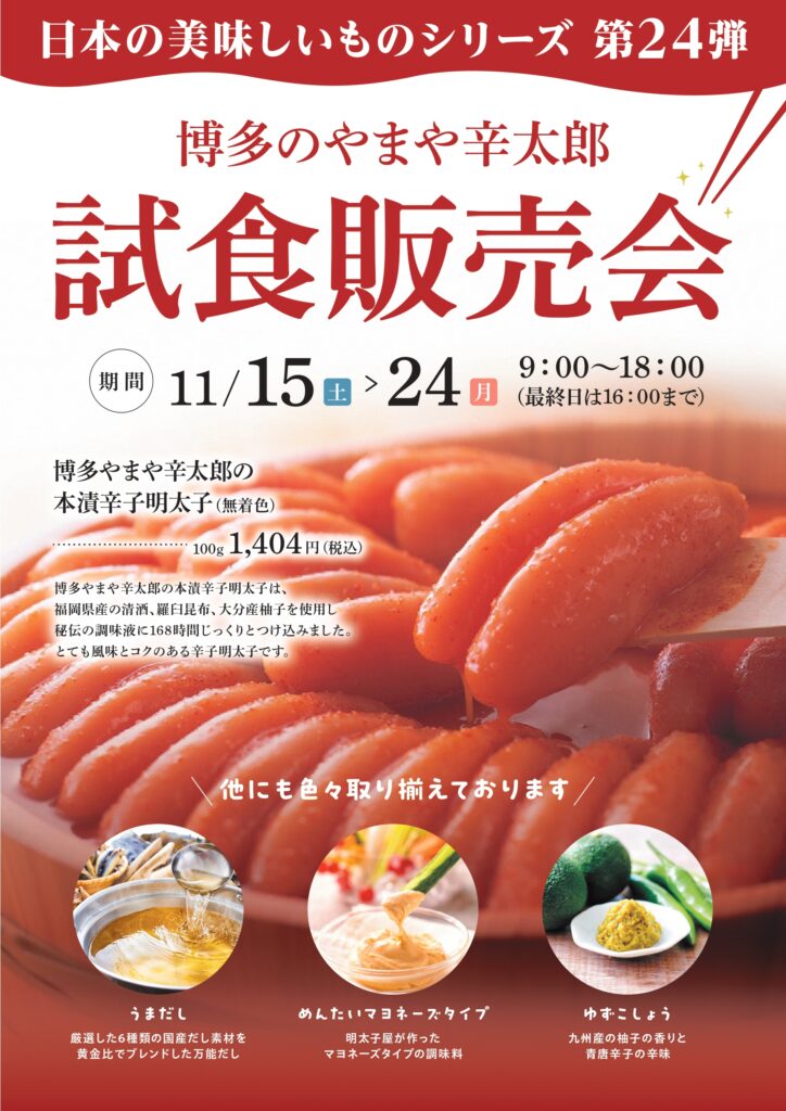 【日本の美味しいものシリーズ第24弾】11月15日〜24日 博多のやまや幸太郎 試食販売会