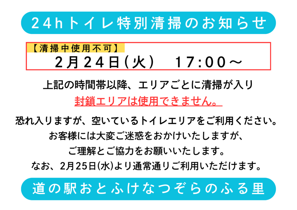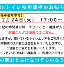 【お知らせ】24hトイレ特別清掃のお知らせ