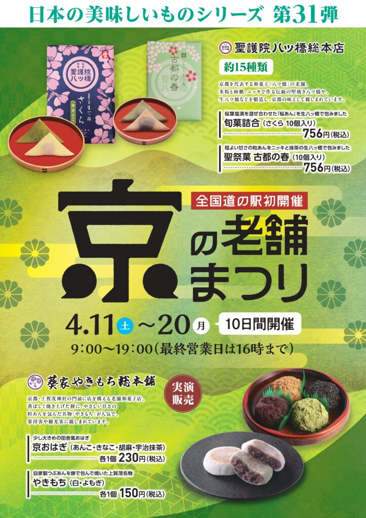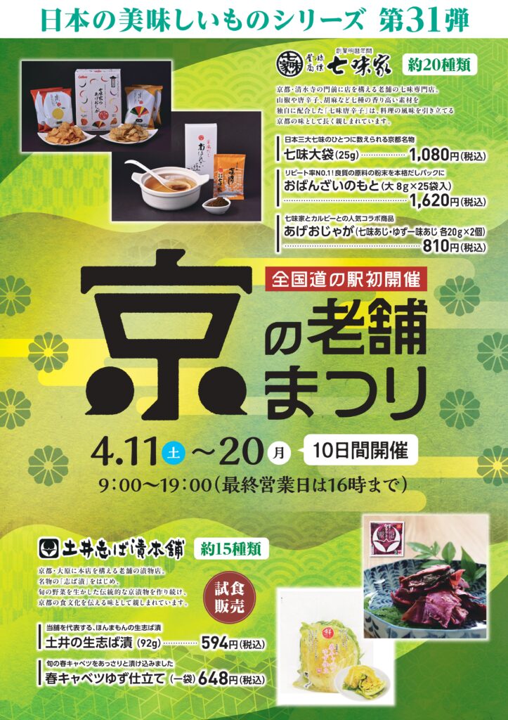 2026年3月27日 お知らせイベント 【4月11日(土)~20日(日) 初開催】京の老舗まつり ◆お問合せ 農畜産物等販売所 なつぞら市場 TEL:0155-65-0931(営業時間 9:00~18:00)